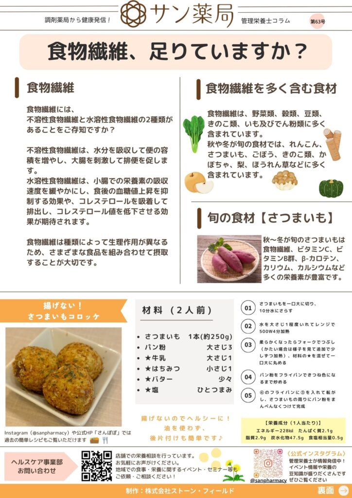 テーマは「食物繊維」です。季節の食材や健康に役立つ情報をわかりやすくまとめています。