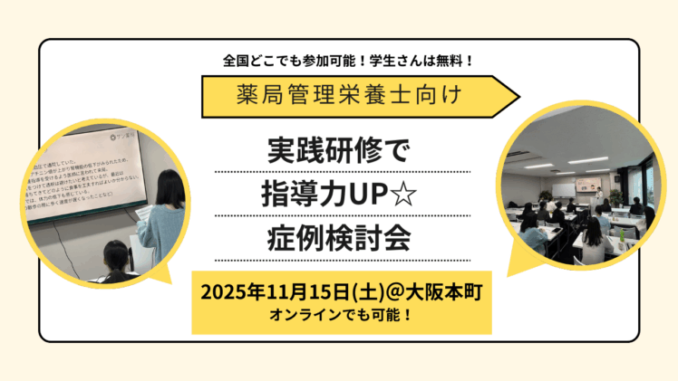 告知 実践研修で指導力UP!~症例検討会~ 参加者募集中! 【実践研修で指導力UP!~症例検討会~ 開催のお知らせ】✨このたび、管理栄養士の実践力向上を目的とした研修「症例検討会」を開催いたします。現場での栄養相談は、一人ひとりの生活背景や疾患に応じて柔軟な対応が求められますが、日々の業務の中で「自... 2025/10/1 告知研修