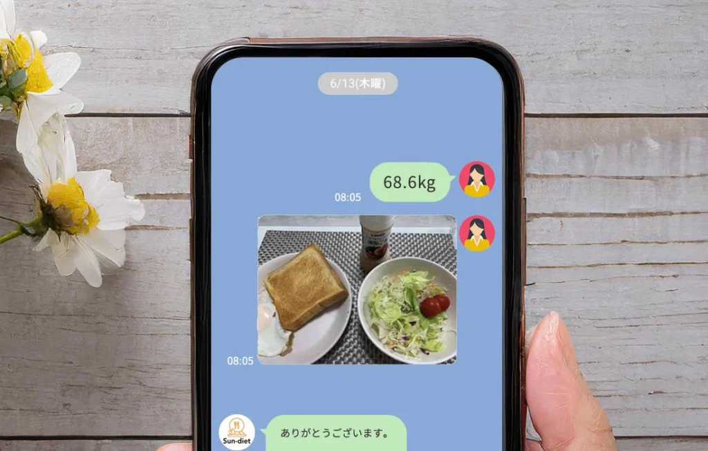 Sun-diet(サンダイエット)は、スマホで管理栄養士から食事アドバイスを受けられる